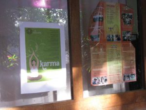 Dan di hari terakhir kunjungan saya di Ubud, saya menyempatkan diri untuk menikmati suasana Ubud untuk terakhir kalinya sambil berjalan kaki seorang diri di sepanjang Monkey Forest dan jalan Hanoman. Di salah satu toko souvenir, saya menemukan sebuah tanda mata yang sepertinya cocok untuk saya hadiahkan bagi tempat berlatih kami, Yoga Leaf di Bandung. Memang pada dasarnya saya adalah seseorang yang senang ‘memunguti’ kata-kata mutiara , kalimat yang tertulis di atas tanda mata tersebut saya rasakan cocok untuk menutup perjalanan saya ke Ubud kali ini, sebagai kesimpulan dari semua yang telah saya lalui selama seminggu ini di Yayasan Bumi Sehat. ( dan hey, memang tidak ada yang kebetulan kan ? 🙂 )