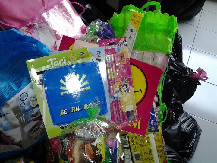 - Peserta YL TTC angkatan 6 ( buku tulis 41 pak, pinsil set 135 buah, penggaris 135 buah, buku gambar 135 buah, goody bag 135 buah ).